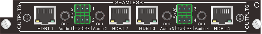 • Output card: 4x HDBT outputs, 4x Audio outputs