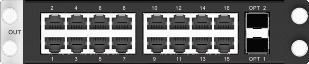 • 16x RJ45 Gigabit Ethernet outputs