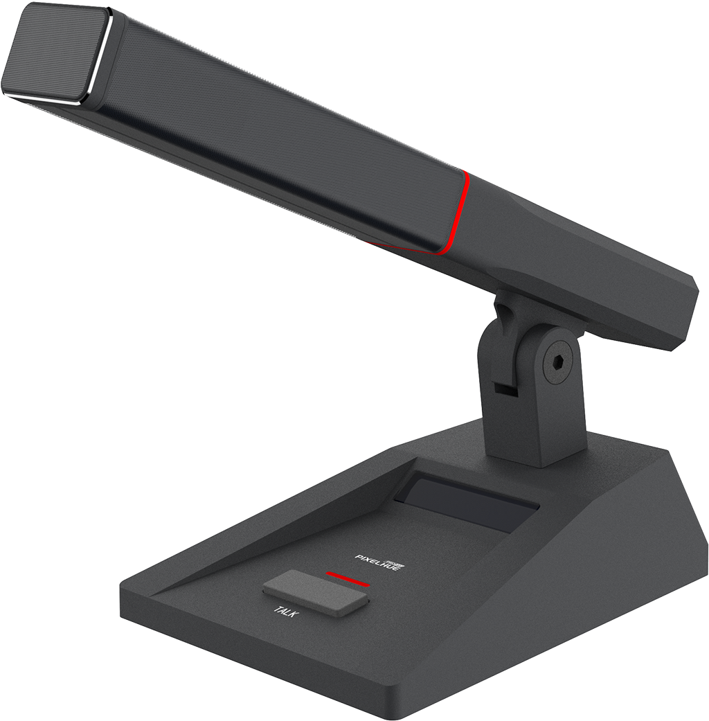 This wide-frequency condenser cardioid microphone features a short gooseneck design and high sensitivity, delivering elegant aesthetics with exceptional acoustic performance. Equipped with dual 14 mm gold-sputtered capsules in a redundant dual-output configuration, it ensures recording reliability. The rubber shock mounting effectively isolates surface-borne noise. With its anodized metal panel and minimalist industrial design, the microphone embodies sophistication and durability. Engineered for premium conference applications, it excels in demanding scenarios including speech reinforcement, professional recording, broadcast environments, and critical conferencing systems.